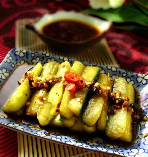酸辣黄瓜条 :2根黄瓜、香油、盐适量,姜丝、干辣椒、葱丝、白糖、香醋、酱油、花椒少许。做法:黄瓜洗净切条,加少许盐腌制片刻。取一个小碗,加入白糖、香醋、酱油和少许盐,鸡精搅拌均匀。炒锅加入香油烧热,把葱姜辣椒倒入炸出香味,再把调好的料汁浇入,小火煮出香味关火。把煮好的料汁浇入黄瓜中,炒锅再加少许油炸香花椒,然后把花椒油浇在黄瓜中,码味5分钟装盘即可。