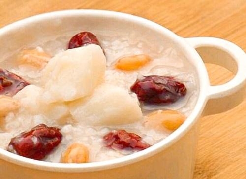 二是山药红枣糯米粥: 山药100克、红枣10颗、糯米100克、白糖或冰糖适量。山药洗净削皮切块,将糯米、红枣洗净后与山药一起放入锅中,加水煮,先武火煮开再转文火,粥成时加入适量白糖或冰糖即可。