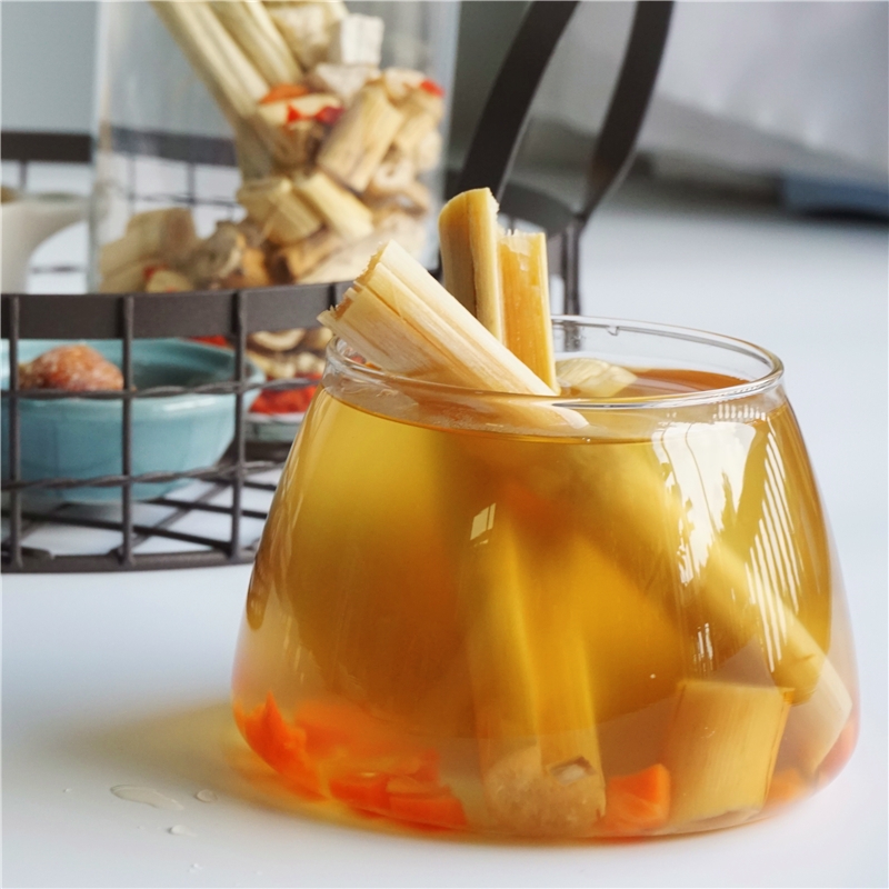 1、竹蔗茅根饮。做法:鲜白茅根100克,竹蔗200克,将竹蔗切碎略捣,加入鲜白茅根,加水适量,煎沸去渣饮用。功效:清热生津、止咳止呕。可用于夏季保健或作为消暑凉茶饮用,也适合肺热咳嗽、咳痰黄稠、胃热呕吐的患者饮用。