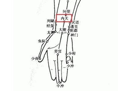 内关穴:位于前臂正中、腕横纹上2寸处,是治疗胃肠疾病的主要穴位之一,按揉此穴能有效缓解胃痛或由胃疼引起的恶心、呕吐等症状。