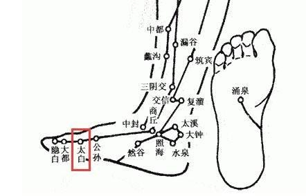 太白穴:太白穴位于脚部,经常按摩利于胃部保养,缓解胃部不适,同时提高脾脏功能。